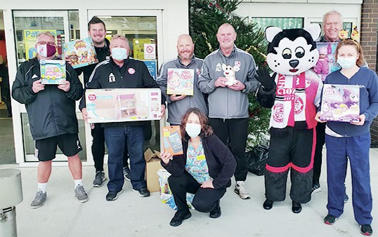 Manager Alan Dowson, staff, directors and players all helped deliver toys to local families as well as ward equipment to local hospitals.