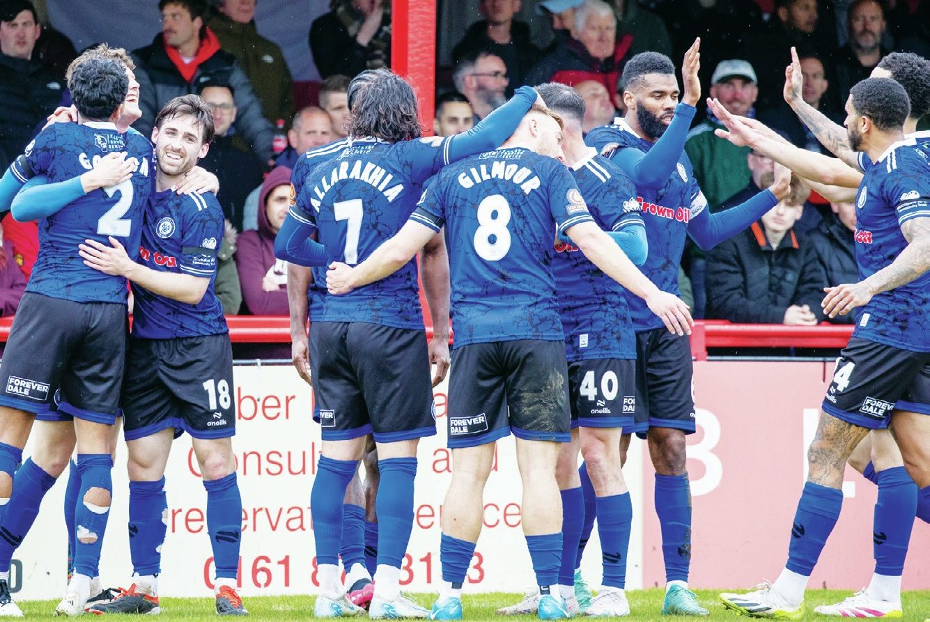 Olly Crankshaw’s late double strike capped a memorable game for Altrincham, who came from behind twice to beat Scunthorpe United in a league fixture for the first time in their history.