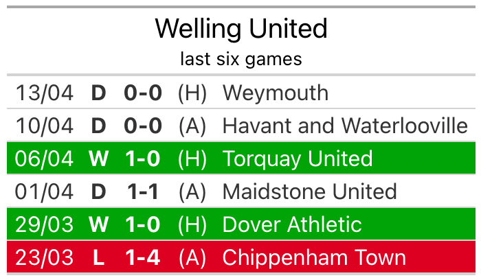 Welling drew 0-0 with Weymouth last time out, also on April 13.