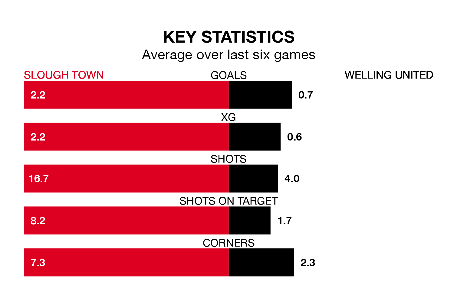 Welling, meanwhile, are below average scorers, with 1.2 goals per game, compared to a league average of 1.4. They have conceded 1.6 goals per game.