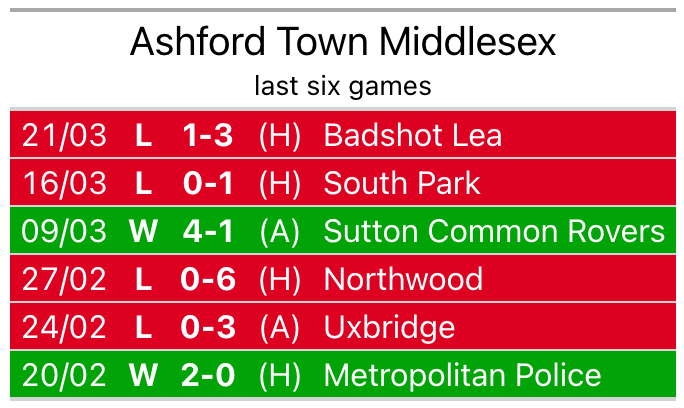With a win and two draws over that period, the visitors’ form is slightly worse – they have taken five points from 18, compared to Ashford Town Middlesex’s six.