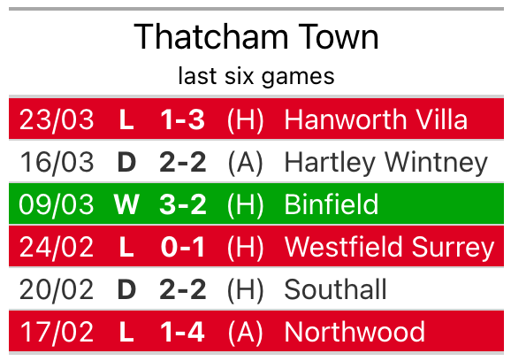 Their last meeting was on August 26, when Thatcham won 2-0 at home.