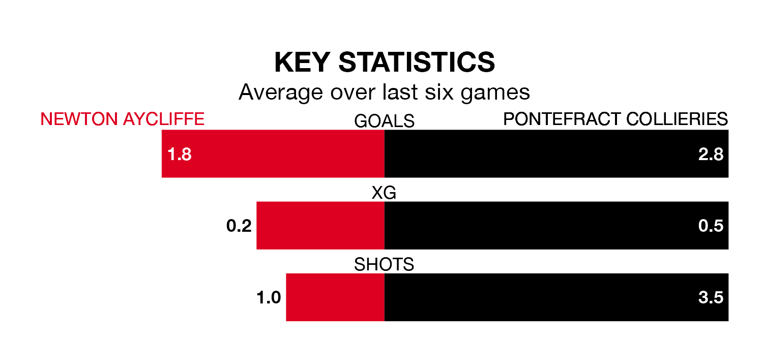 With four wins and a draw over that period, Pontefract Collieries’s form is much better – they have taken 13 points from 18, compared to Newton Aycliffe’s seven.