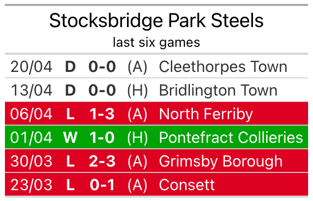 They face a Stocksbridge side who secured a draw in their last match, a 0-0 tie with Cleethorpes Town, and who sit 15th in the table.