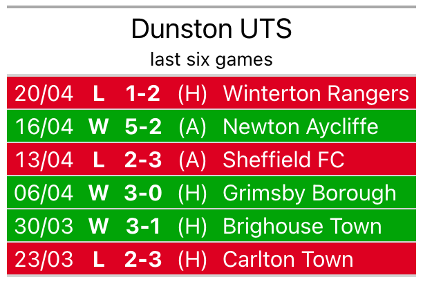 Dunston UTS, who sit second in the league after 34 games, fell to a 2-1 home defeat to Winterton Rangers on April 20.