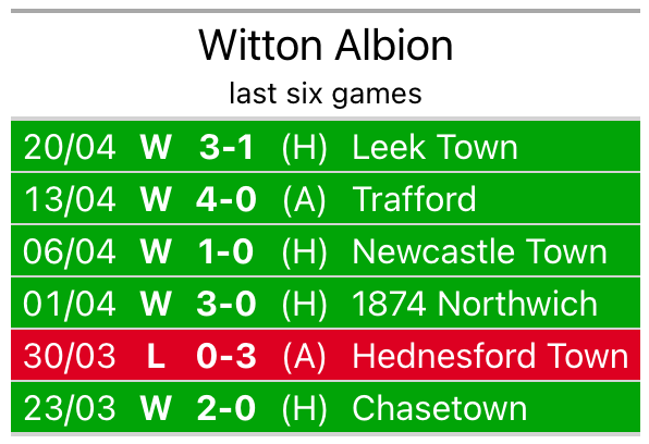 Witton beat Leek Town 3-1 last time out, also on April 20.