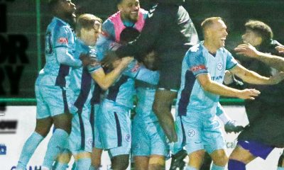 By William Kruczek BRACKNELL TOWN 4 McGregor 85, George 94, Bowerman 96, 98 SHOLING 2 McCarthy 19, Higgs 25 LIFT OFF: Bracknell Town players celebrate Seb Bowerman’s goal for 3-2 BRACKNELL Town completed one of the combacks of the season after scoring three injury-time goals to stun visitors Sholing. The...