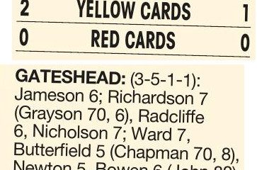 By Jeff Bowron GATESHEAD 1 Beck 79 BRACKLEY T 2 Brown 17, Harratt 28 THIS was no Valentine’s Day massacre, but no love-in either for the long suffering Heed faithful as Gateshead became further entrenched at the bottom. It was a third successive narrow defeat for the Tynesiders, who paid...