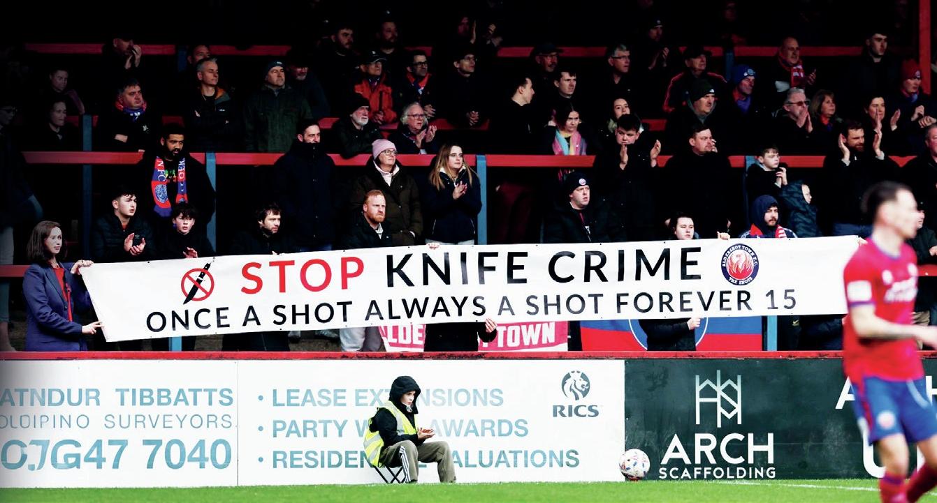 The Shots faithful in the East Bank unfurled a huge banner reading: “Stop Knife Crime: Once A Shot, Always A Shot, Forever 15” in memory of 15-year-old Luis Gabriel Guembes, a dedicated Aldershot fan who was tragically stabbed to death in Guildford on January 19.