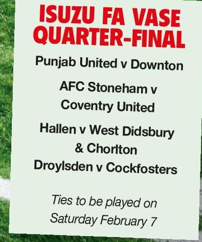 Village side Downton will be looking to continued their record Isuzu FA Vase run when they take a trip to Kent to face Punjab United for their first-ever quarter-final clash.