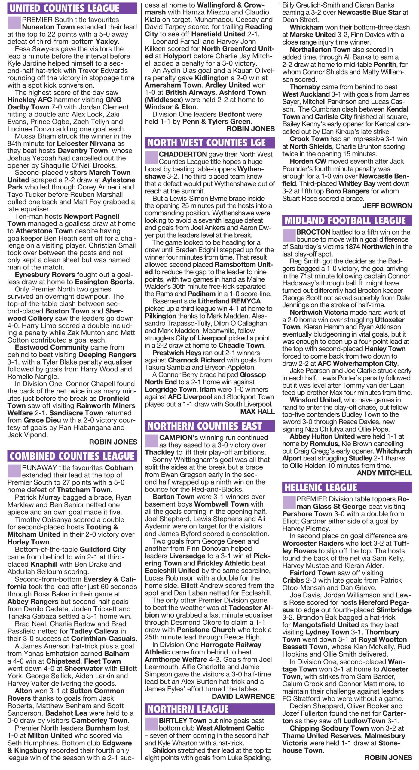 WELSH ROUND-UP By Rob Cole IEUAN OWEN was the toast of Barry Town as he fired home twice to spearhead a sensational 2-0 Nathaniel MG Cup final triumph over holders The New Saints at Penybont’s DragonBet Stadium. Although massive underdogs, Barry not only held their ground but also found a...