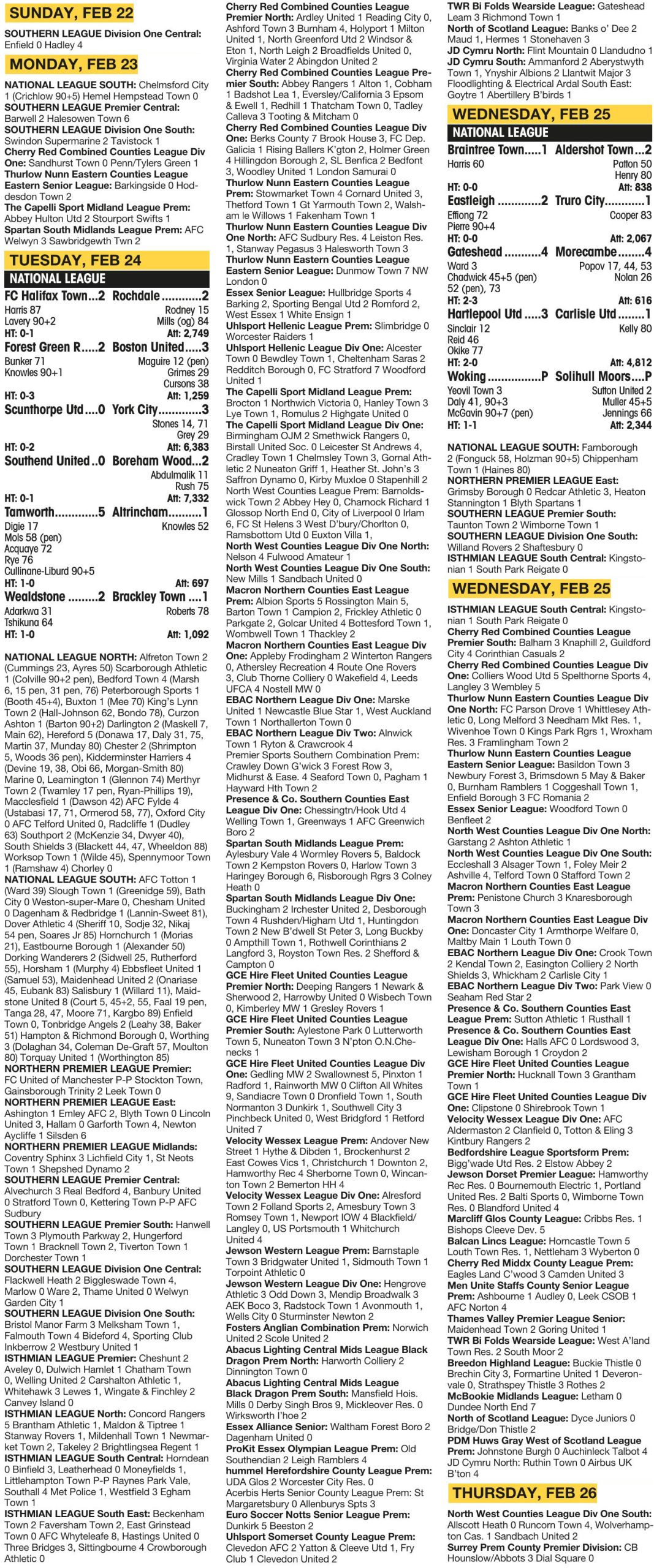 MIDWEEK RESULTS
