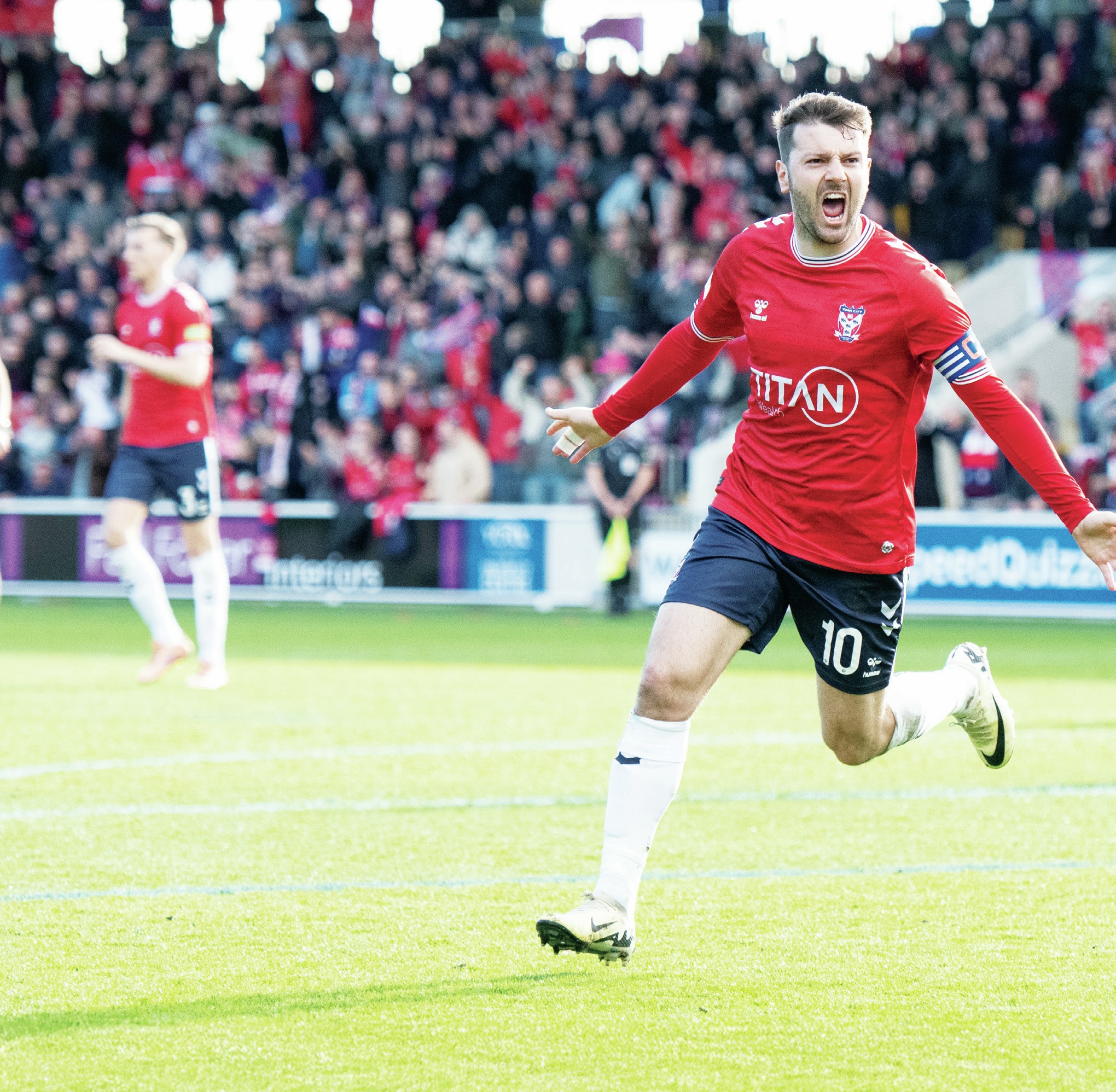 HEAD-TO-HEAD: Rochdale’s Mani Dieseruvwe, left, and York’s Ollie Pearce were both on target on a dramatic penultimate day which sets up Saturday’s title showdown