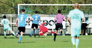 AFC Stoneham find themselves within touching distance of Wembley after a ruthless first-half performance took this clash away from hosts Hallen.