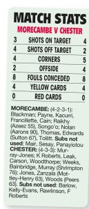 By Derek Quinn MORECAMBE 1 Edwards 21 CHESTER 1 Shrimpton 90+5 A DRAMATIC 94thminute strike from substitute Fin Shrimpton earned Chester...