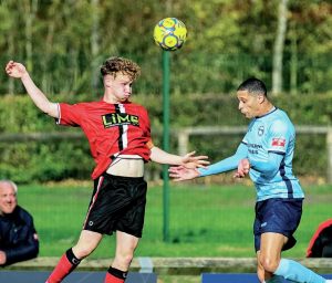 By Andy Mitchell HARTPURY 0 GLOUCESTER WON 5-4 ON PENS GLOUCESTER C 0 BATTLE: Gloucester’s Daniel Leadbitter wins an aerial challenge...