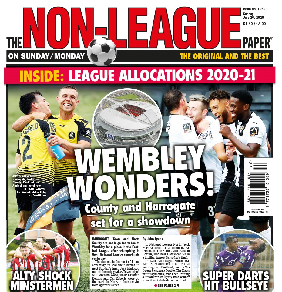 Wembley wonders Notts County and Harrogate Town hog the headlines as The Non-League Paper covers football’s return and every kick of a ball from the National League’s promotion play-offs!