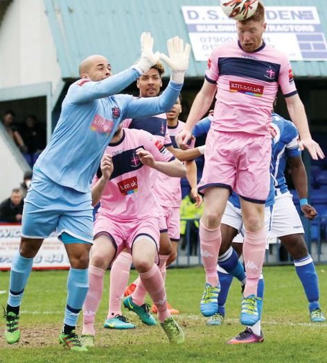 TONBRIDGE A 0 DULWICH H 0 AWAY! Dulwich’s Mark Weatherstone and Preston Edwards combine to clear PICTURE: Edmund Boyden TONBRIDGE: 4-4-2:...