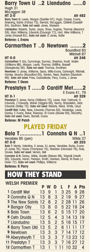 By Chris Smart CARDIFF MET UNIVERSITY continued their impressive form to go to the top of the Welsh Premier League table...