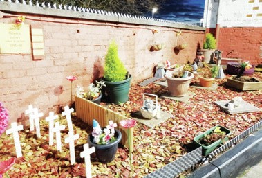 After climbing some steps, I pause to look at the memorial garden, remembering Albion Rovers’ players killed in action in WW1, which is a nice touch.