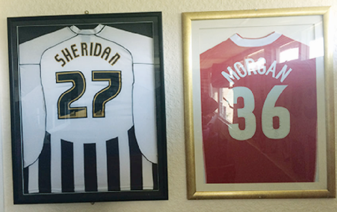 Framed on the wall of their clubhouse, Morgan’s red Forest shirt sits proudly alongside the one another alumni, former Tamworth, Lincoln City and Alfreton midfielder Jake Sheridan, wore for Notts County.