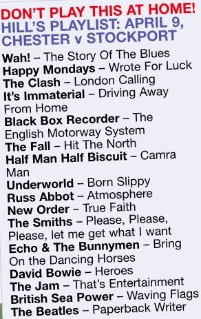 However, for last week’s crucial Tuesday night clash against Stockport, the huge honour of selecting the music fell to my good self, people’s champion and self-appointed voice of the fans.