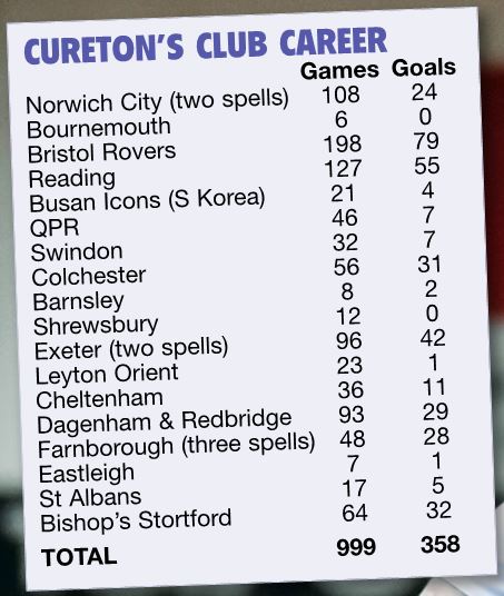 Since making his top-flight debut in the Premiership with Norwich in 1994, Cureton has notched up 999 appearances and scored an impressive 358 goals along the way.
