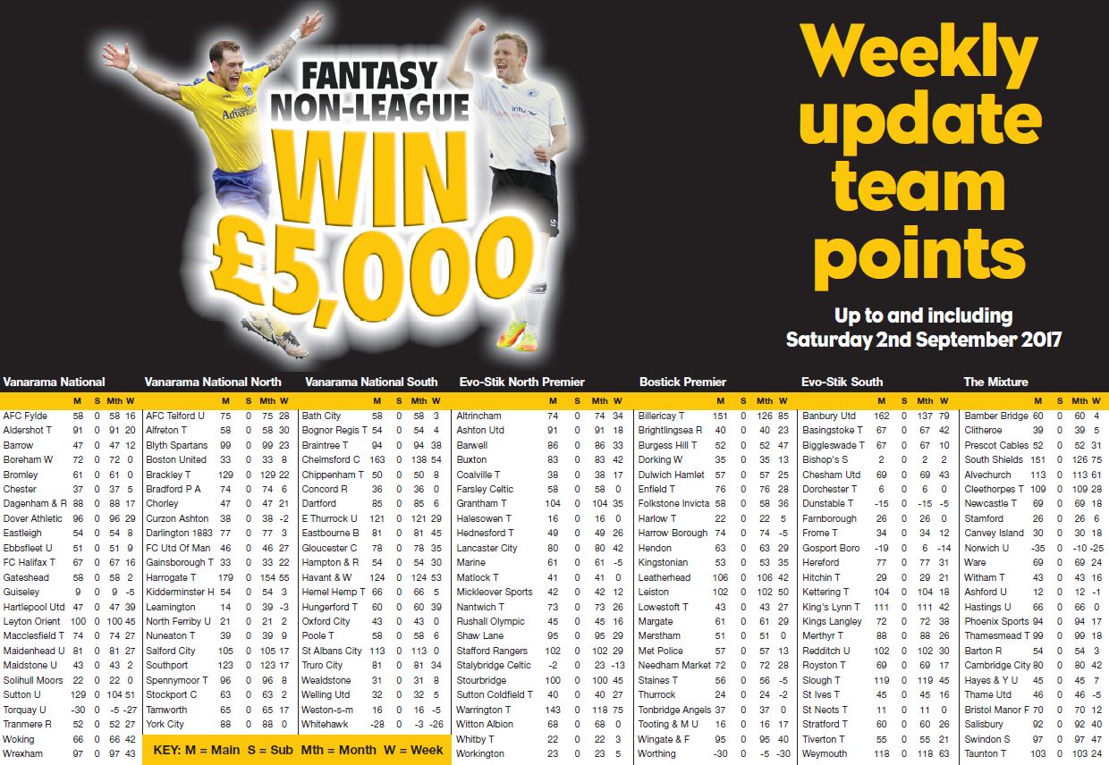 2017 through to Saturday 2nd September 2017. Well here we go again!! Welcome aboard another Fantasy Non-League journey.