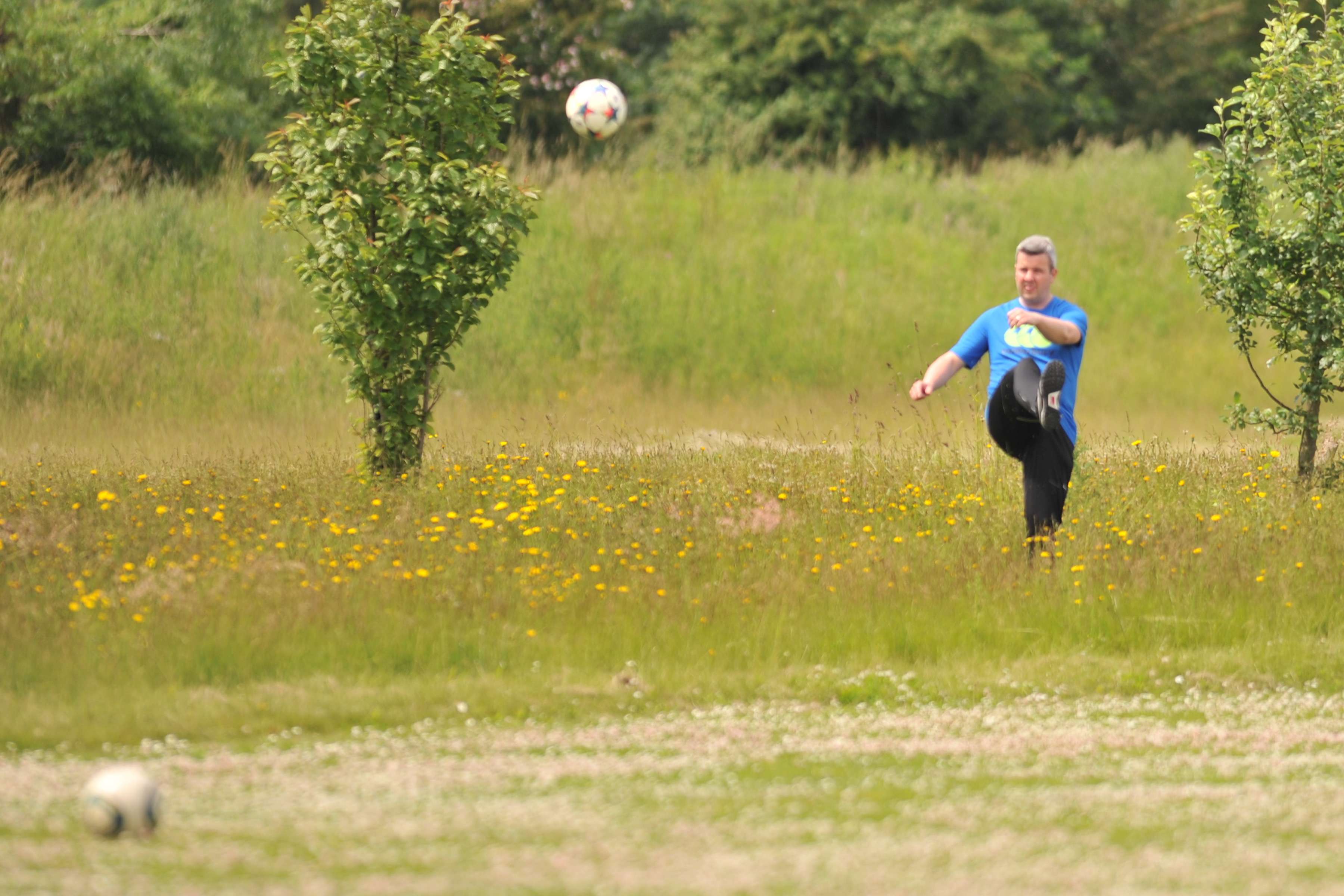 Watching the experienced footgolfers soon has me changing my approach. Toe-punting the ball into the hole is particularly effective, side-footing from the tee gets me in better positions and, when finally out of the long grass, I even manage to sink one from distance – though not from as far as Ben and Daniel.