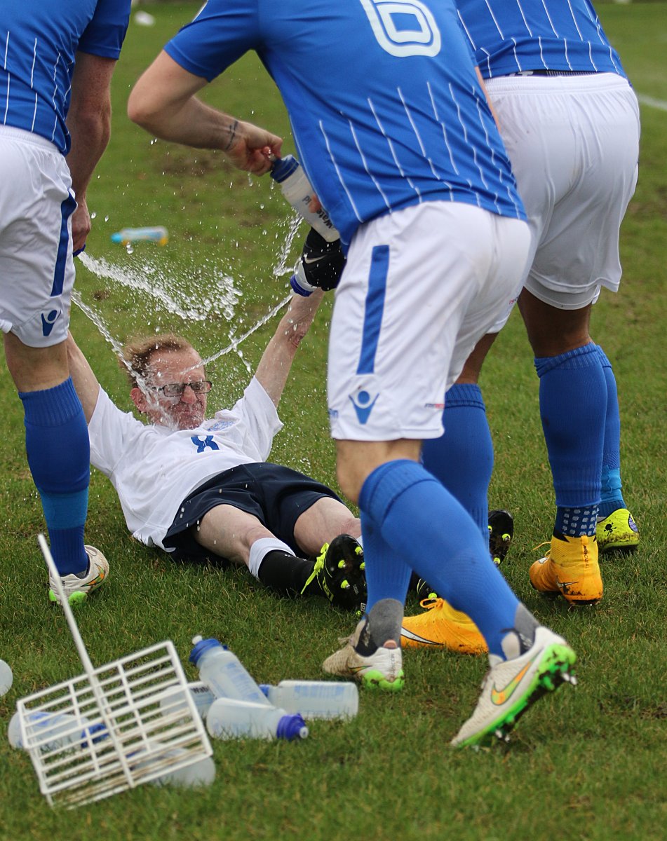 Corby Town’s Jason Lee got chins wagging when his side found the net against Mickleover Sports. But it wasn’t their goal that caught the eye. While the rest of the squad were celebrating with fans, cheeky Lee quenched his thirst by picking up a supporter’s pint of beer and taking a few gulps. Cheers!