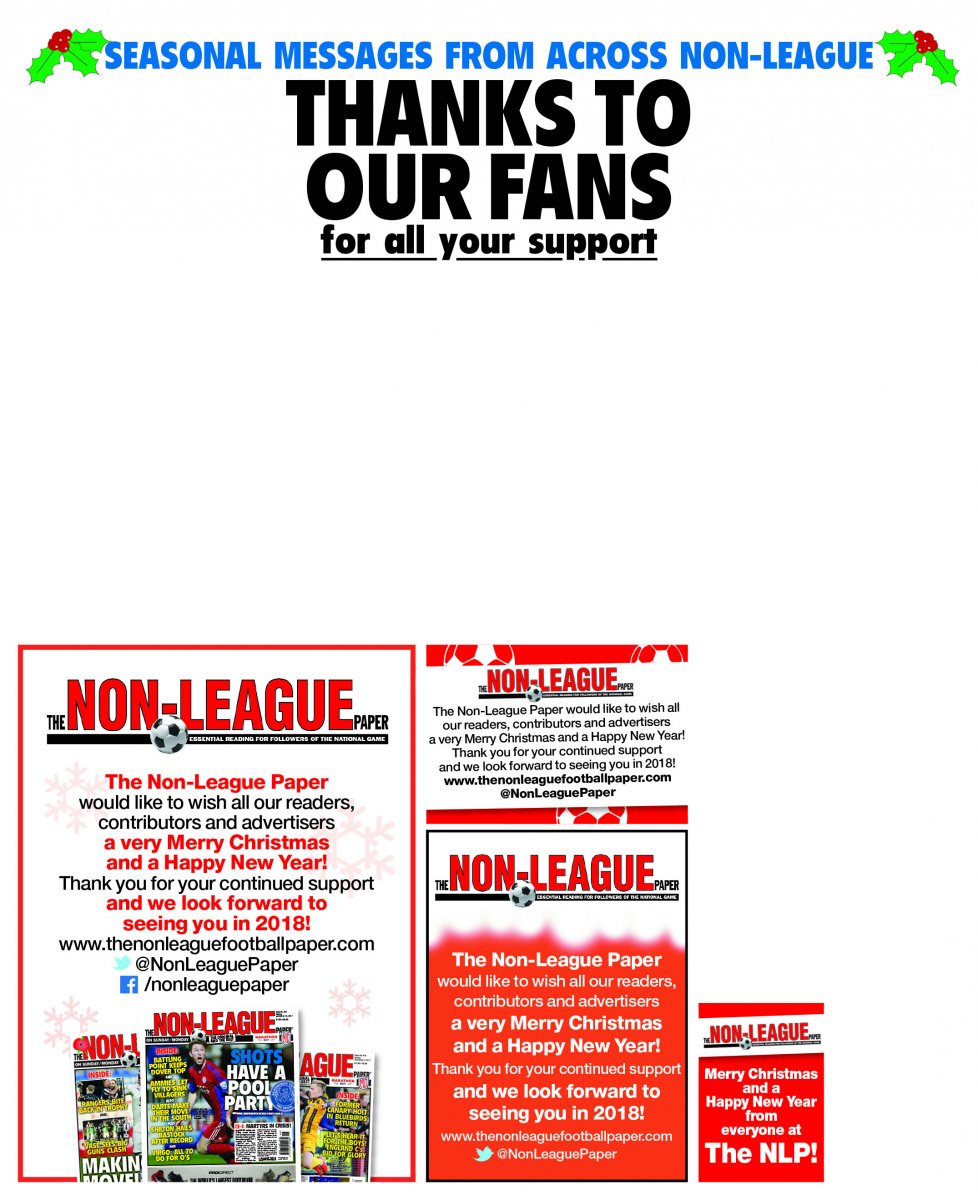 The festive season is well and truly upon us, and while The Non-League Paper won’t be airing any heartwarming TV adverts, we will once again be running our seasonal ‘Christmas Greetings’ page for 2017.