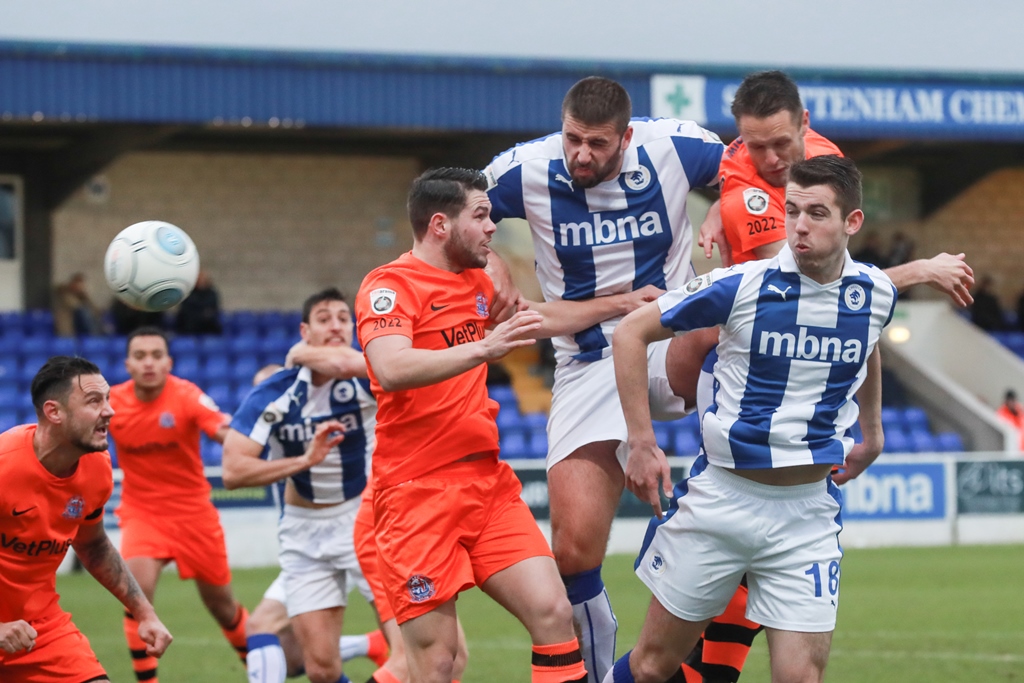 Despite suffering a heavy defeat at Halifax last weekend, the talented young centre-back is right in the thick of it and leading from the front in a bid to keep Chester perched on Non-League’s top table.