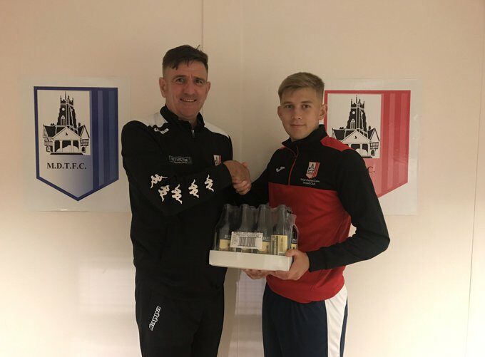 “You simply can’t play too many youngsters in the same team in the Northern Premier, you just can’t do it without players who have been around – and that costs,” said MCormick, pictured handing Harvey Howell his Bowlands Brewery Player of the Month award for August.