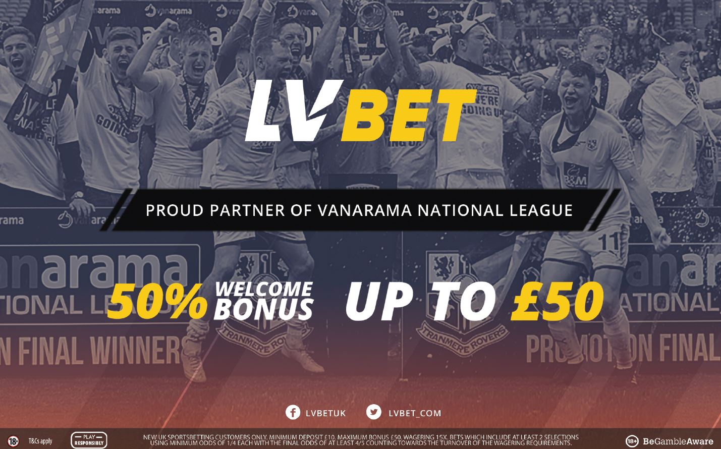 New LVBet customers will get a 50% bonus of up to £50 on first sports betting deposit. Claim the welcome offer here! (t&c’s apply)