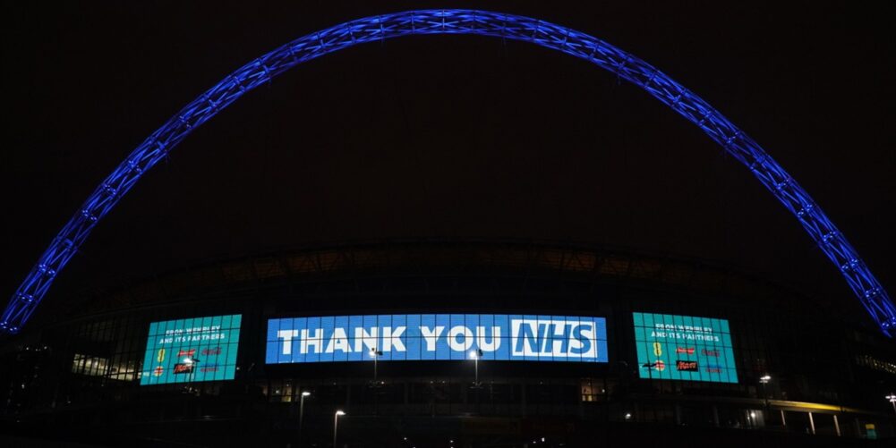 Tweeting out the first images, @wembleystadium posted: “To all of our NHS & front-line staff working tirelessly through this challenging time, Wembley Stadium and its partners thank you.