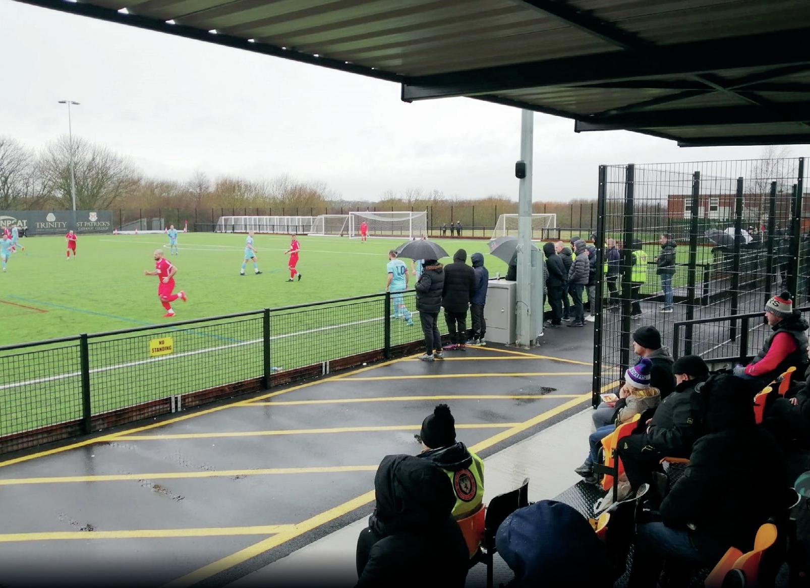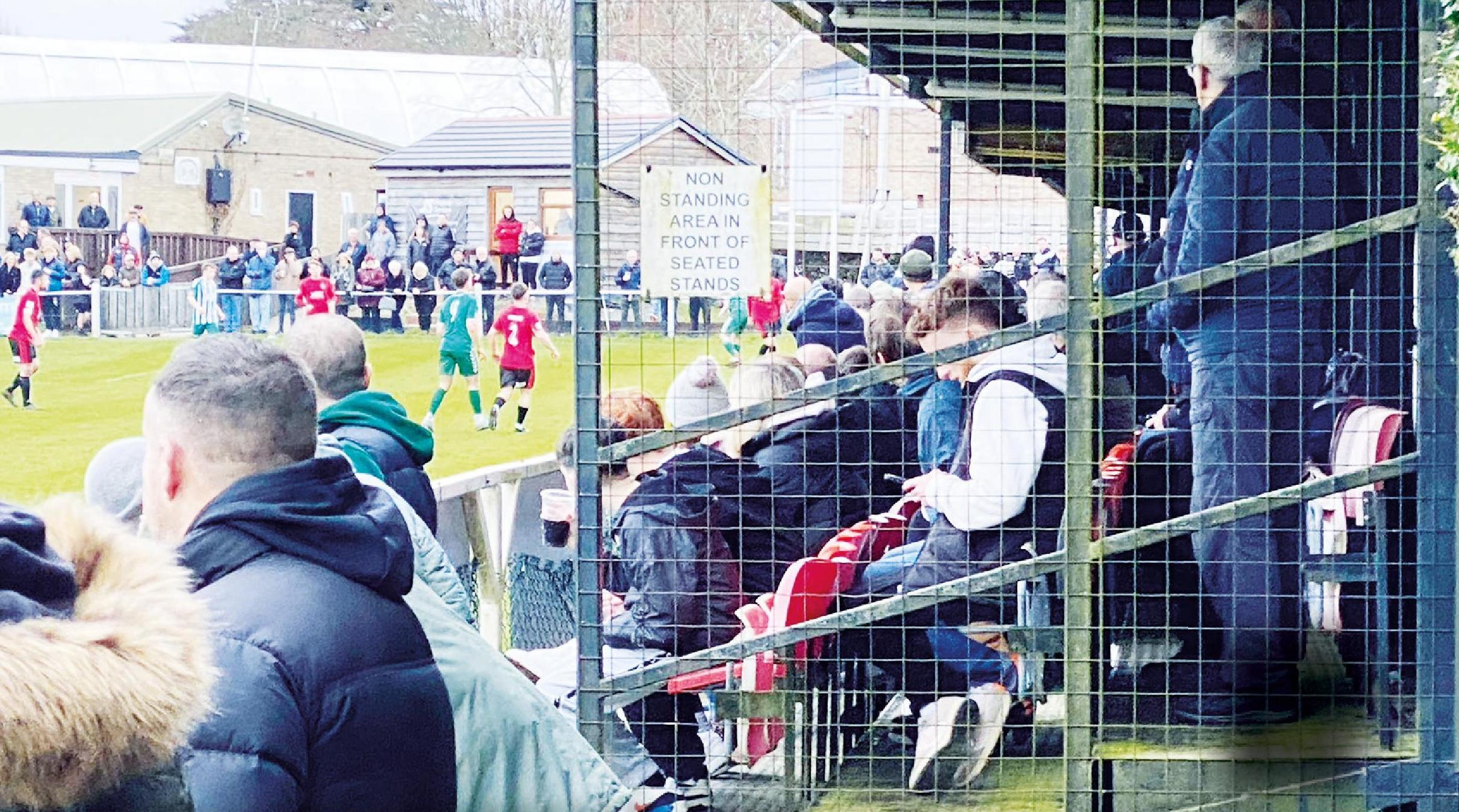 I pay £5 at the entrance hut and head for the roomy clubhouse. There are very tasty filled rolls on sale from the bar plus pies and chips. People in here aren’t really talking about viruses, just looking forward to some good old fashioned football. The toilets are spotless and very well stocked with handwash, though!