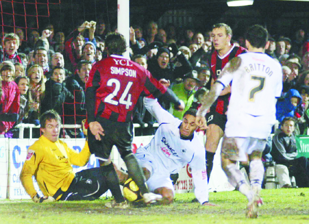 Current Premier League stars Ashley Williams, Leon Britton and Nathan Dyer – a 65th-minute substitute – were on the visitors’ teamsheet, while the Stutes, on their way to finishing in the Blue Square Bet Premier play-offs, had the likes of Nat Knight-Percival, Lanre Oyebanjo, Danny Wright and goalscorer Josh Simpson in action.