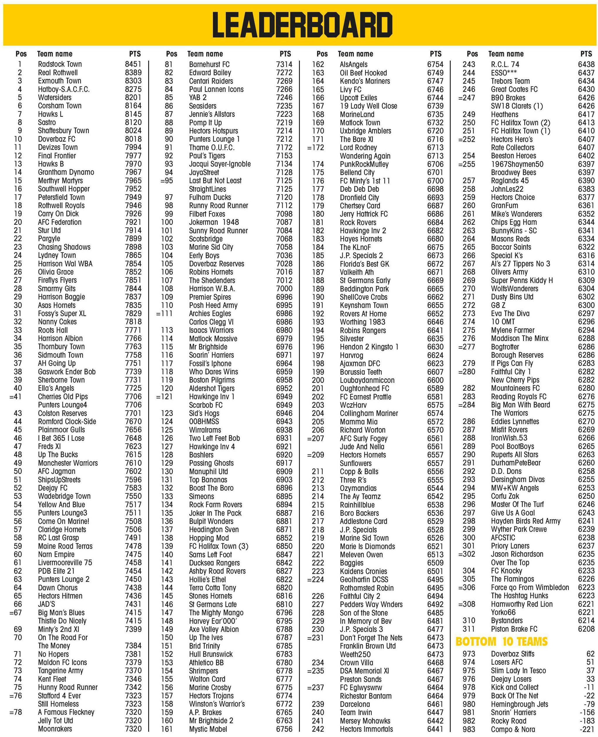 We have now passed the three month stage, so we are about a third of the way through this FNL season.
