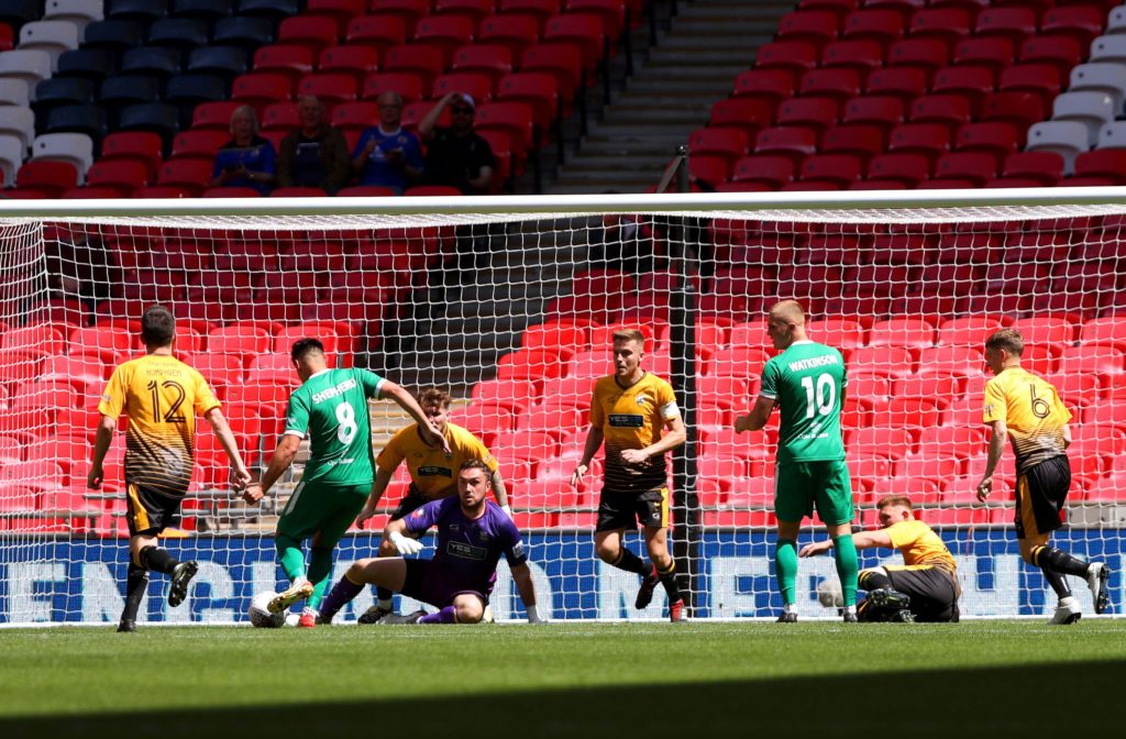 Gaskin’s departure, following an innocuous clash with Mo Ahmed, clearly hurt the Marigolds and Newport went for the jugular. They should have doubled their lead five minutes into the second half. Another corner from Shepherd found captain Wright unmarked eight yards out but his powerful header was somehow tipped over the bar by Binfield