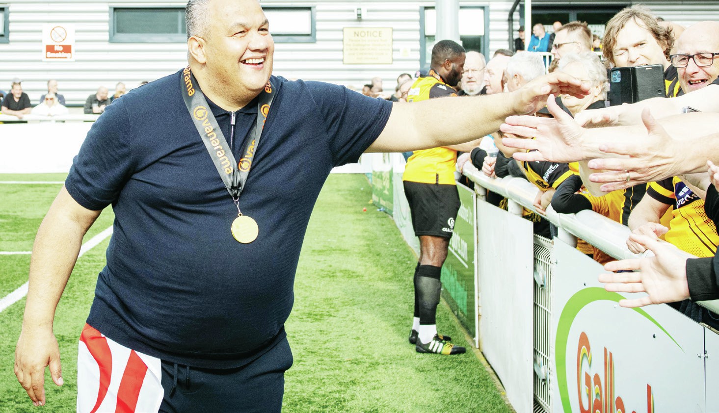 HIGH FIVES: Hakan Hayrettin celebrates Maidstone United’s National League title triumph with supporters