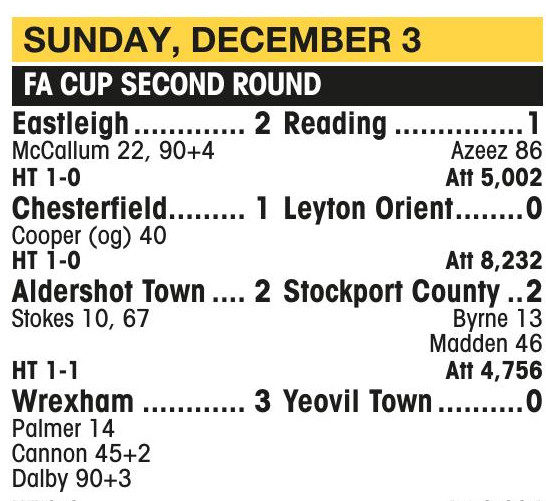 IT’S THERE! Paul McCallum scores Eastleigh’s winner against Reading