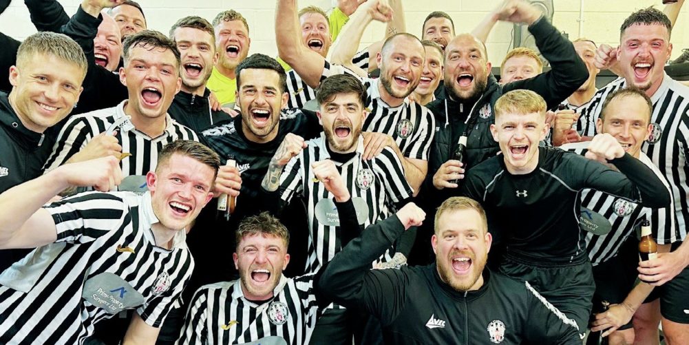 JOY DIVISION: Heaton Stannington celebrate winning promotion to Step 4 for the first time in the club’s history