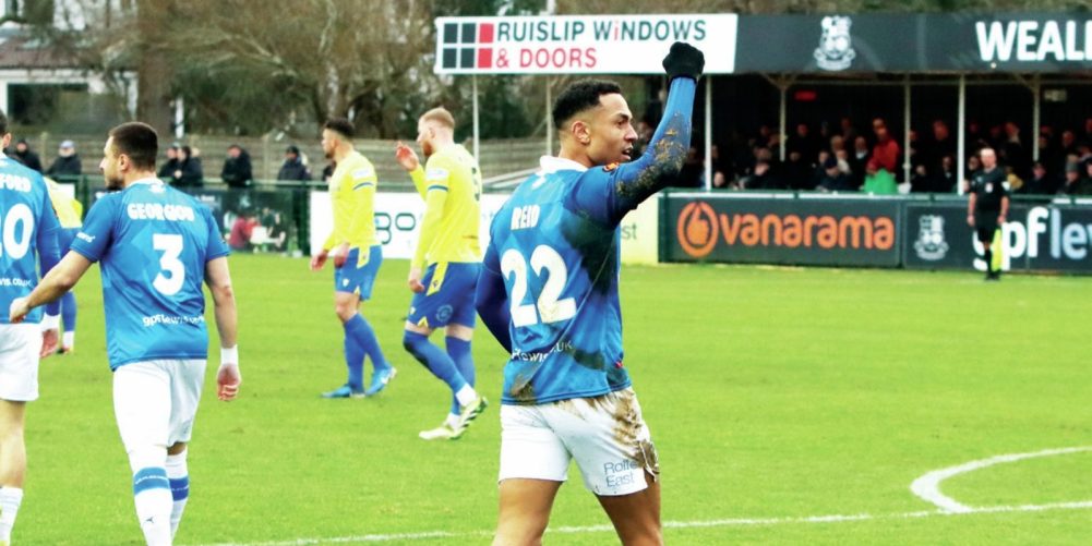 Alex Reid celebrates a goal for Wealdstone PICTURE: Jon Taffel
