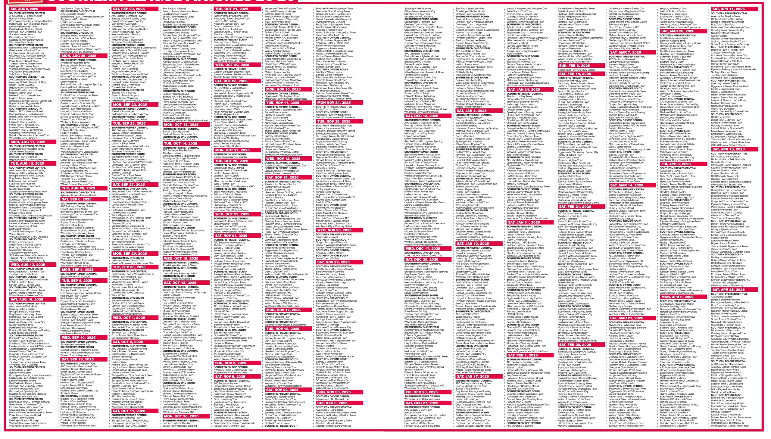 SOUTHERN LEAGUE FIXTURES 25-26