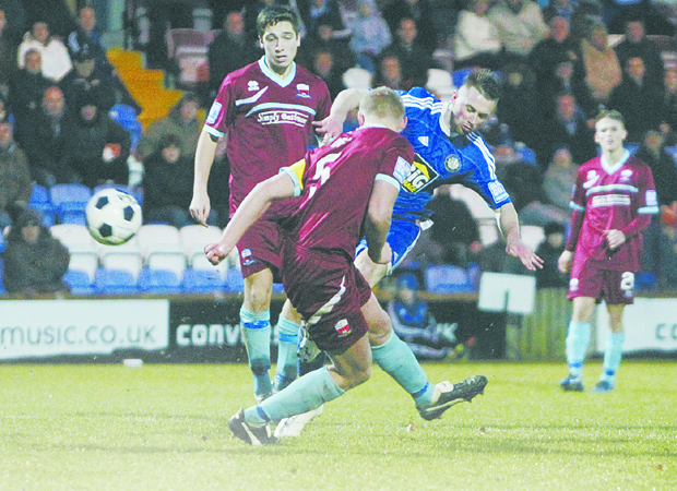 Welcome home: Local favourite Holroyd (in blue) has returned to Macclesfield