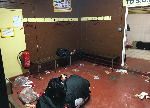 But they were seemingly in a rush to get away after the game and left tape, toilet roll, drinks, milk and programmes for Sutton to clean up.