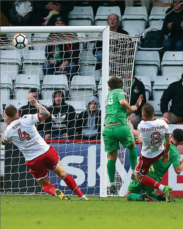 SO CLOSE: Sean Cook fires just over for Nantwich, but the Dabbers had no answer to Stevenage