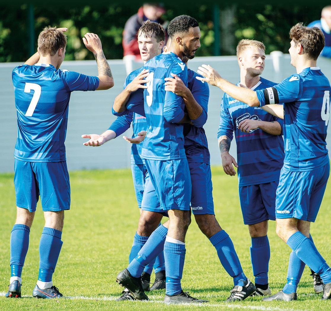 ON THE MARCH: Irlam’s players celebrate victory in the last round against Charnock Richard which earned the club a home draw against York City