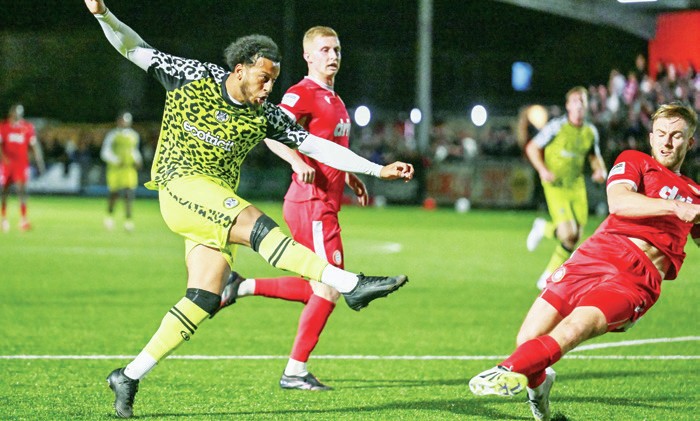 STRIKE: Forest Green’s Jayden Clarke fires a shot against Worthing