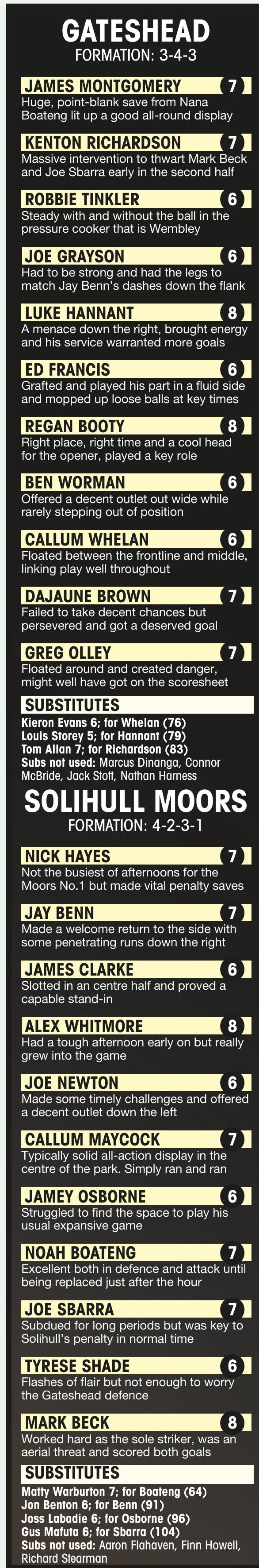 For Gateshead, pure joy. Victory under Wembley’s arch after twice finishing on the losing side, the most recent just 12 months ago in this very game.